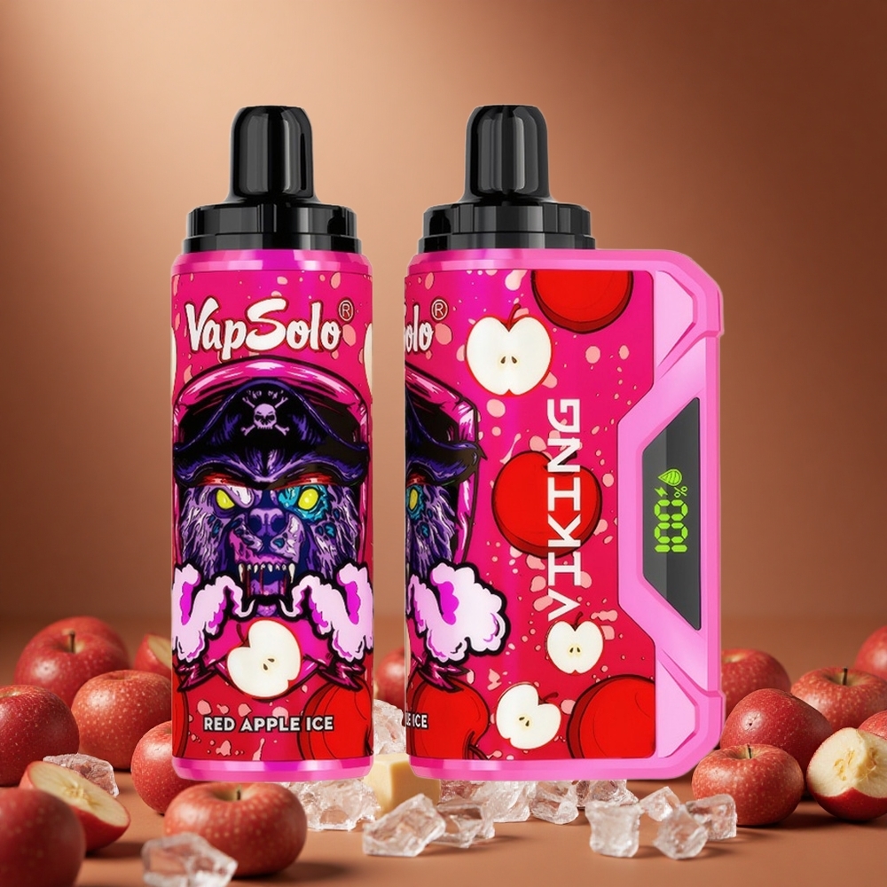 VapSolo VIKING 12000パフ 使い捨てvape レッドアップルアイス 22ml 20mg/ml & 50mg/ml Type-C充電 LEDディスプレイ 日本 vape